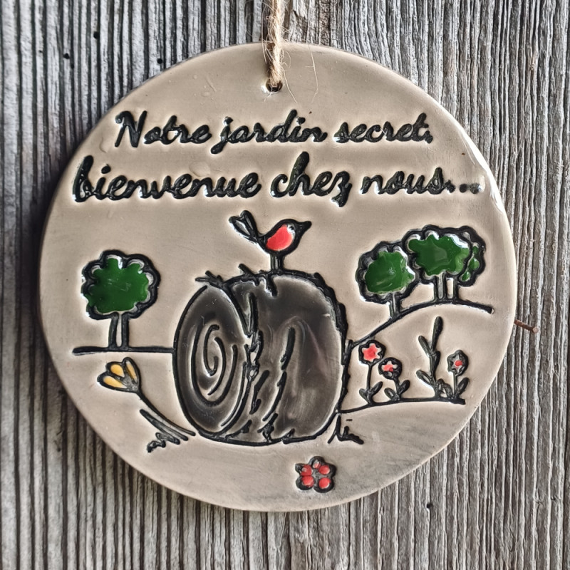Cadre rond : "Notre jardin secret, bienvenue chez nous..."