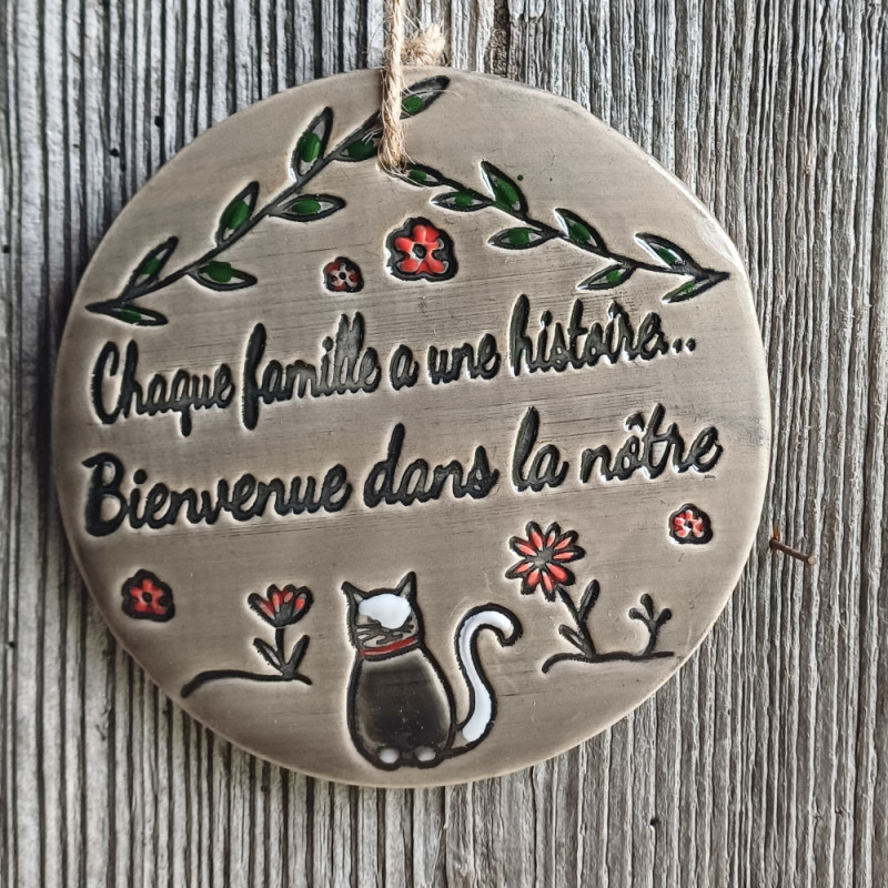 Cadre rond : "Chaque famille à une histoire, bienvenue dans la nôtre..."